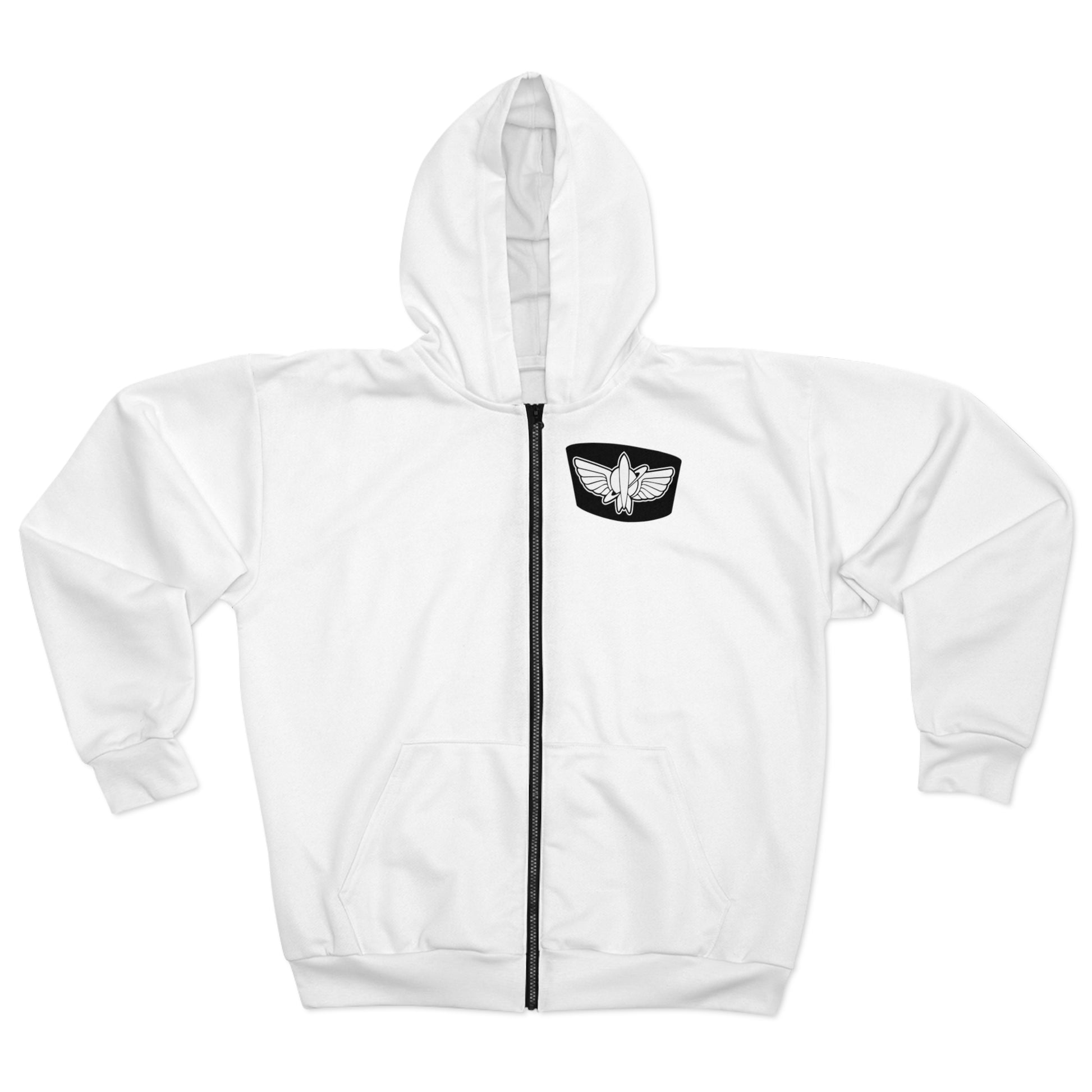 This zipped fleece jacket will keep you nice and toasty through the cold. It’s a great all-over print zip hoodie that is easy to customize without fear of visible white lines at the seams. It has a large front pocket, black zipper, a roomy hood and is custom cut and sewn. It’s your perfect pick this winter.